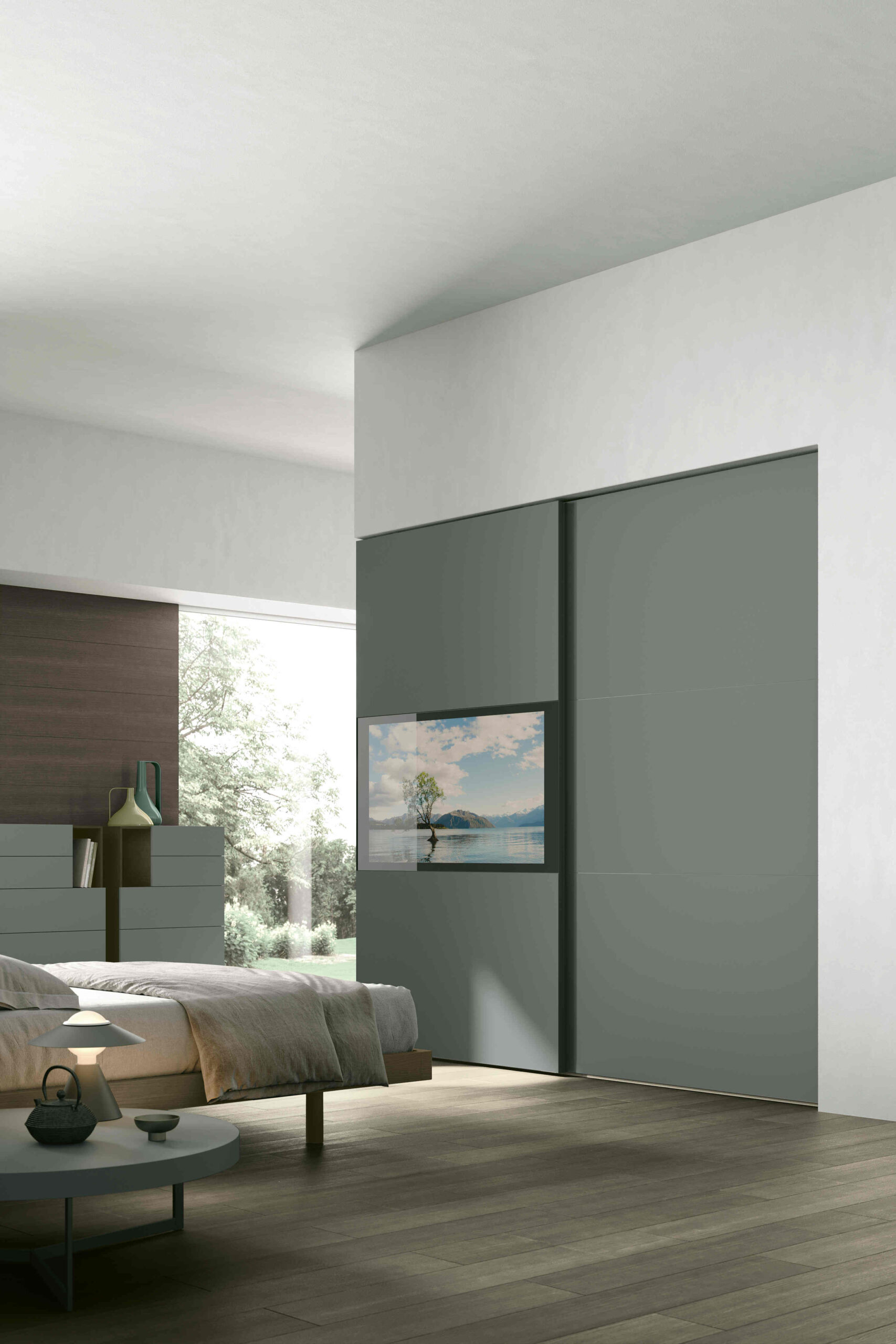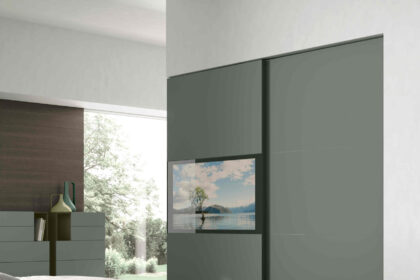 L’armadio Primafila di Tomasella è un arredo che rivoluziona il concetto stesso di camera da letto, integrando la tecnologia in modo discreto e intelligente. Il suo elemento distintivo è rappresentato dall’innovativo sistema di ante scorrevoli che include un televisore, perfettamente integrato nell’anta stessa. Questa soluzione permette di godere di momenti di relax senza rinunciare all’estetica dell’ambiente: quando la TV è spenta, il vetro Stopsol la nasconde completamente, creando un effetto di continuità e pulizia visiva.